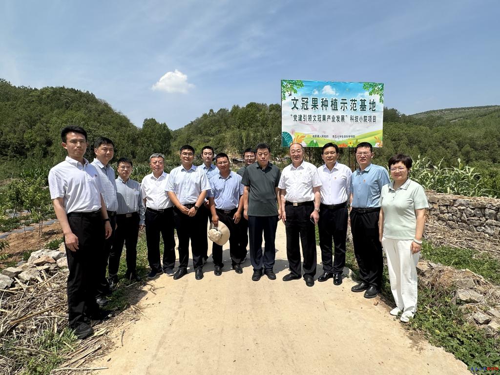 会前,在诸葛镇大崖头村支部,薛冰一行实地查看了双方合作的文冠一期试验田,并听取诸葛镇有关人员介绍项目未来规划。下一步,学院将以此次合作项目的顺利落地为契机,秉承“校地合作、相互促进、平等协商、互利共赢”的原则,不断探讨和扩大合作领域,持续深化校地协同创新,为沂水县高质量发展提供科技人才支撑。