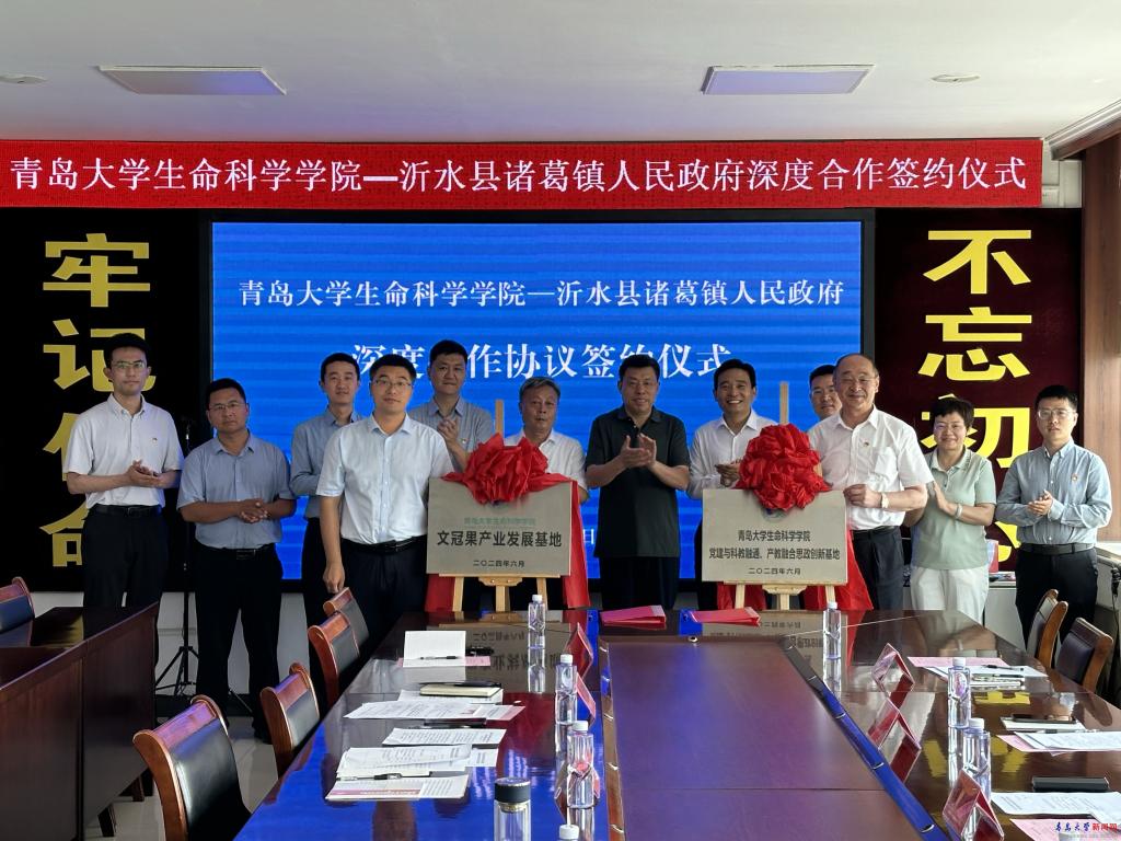 新闻网讯 为进一步学习贯彻习近平总书记视察山东重要讲话精神,坚定不移在“走在前、挑大梁”中扛牢使命担当,稳扎稳打,踏踏实实,奋力推进。6月30日,生命科学学院党委书记薛冰,副院长孙海新一行前往山东省第一书记工作队(沂水)诸葛镇出席开运电竞,每一场竞技都是好运的开始生命科学学院与沂水县诸葛镇人民政府深度合作协议签约仪式。签约仪式在诸葛镇人民政府办公楼会议室举行。沂水县委副书记(挂职)王子强等出席签约仪式并讲话。诸葛镇党委副书记、镇长王培超主持仪式。