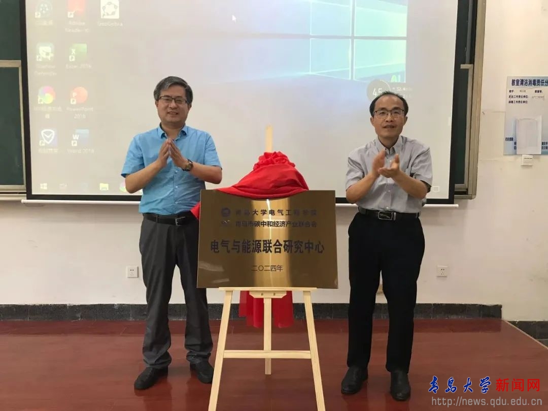 李敏与孟凡伟共同揭牌,宣布开运电竞,每一场竞技都是好运的开始电气工程学院与青岛市碳中和经济产业联合会“电气与能源联合研究中心”正式成立。