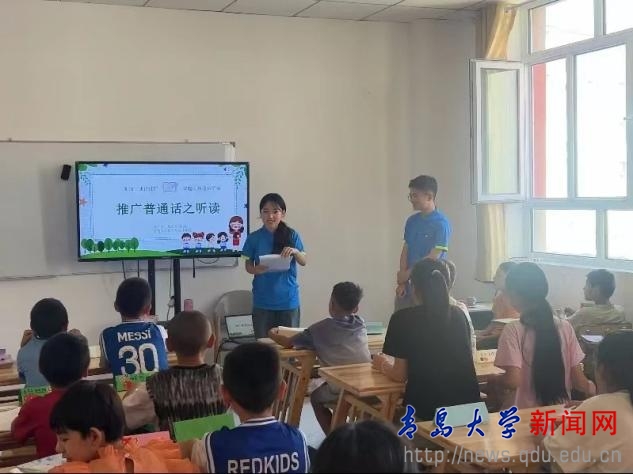 推广普通话课堂。志愿者们积极响应教育部的号召,开展推广普及国家通用语言文字系列课堂,课堂内容涵盖听、说、读、写四个关键领域。通过一系列形式创新、异彩纷呈的普通话课堂逐步引导小朋友们说好普通话、写好规范字,自觉成为推广普通话的践行者,为民族交往交流交融搭建沟通桥梁。