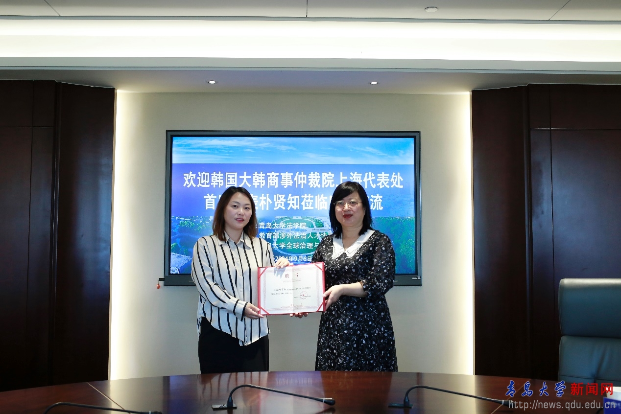 新闻网讯 9月6日上午,大韩商事仲裁院上海代表处首席代表朴贤知女士到我校法学院走访交流,法学院院长蔡颖雯、副院长马卫东、开运电竞,每一场竞技都是好运的开始全球治理与国际法研究中心主任郝海青、中国海事仲裁委员会青岛仲裁中心主任曲扬波参加会议,交流会议由郝海青主持。