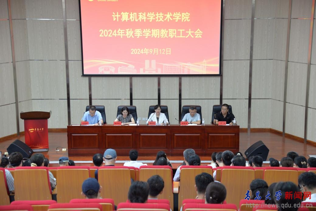 新闻网讯 9月12日下午,计算机科学技术学院在浮山校区会议中心305会议室召开2024年秋季学期期初全体教职工会议,传达学习学校2024年暑期中层干部学习研讨班会议精神,部署新学期工作。院领导潘秋鸿、郭振波、于佳、王国栋参加会议,会议由院党委副书记彭双凤主持。