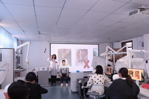 本次培训分为三期,依次按照“实验教学规范化”“临床技能提升”以及“实验室管理与教学创新”三个主题依次开展。院长袁昌青在第一期培训中强调,规范教学是提升教学质量的关键所在,实践教学更是培养口腔医学专业学生的重要内容。年轻教师们要以卓越为目标,以创新为追求,充分准备实践教学内容,提升课堂教学水平,提高学生学习效果。