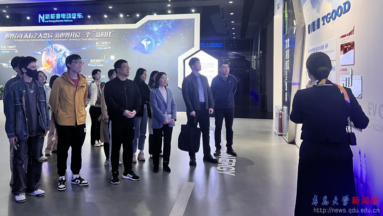座谈会前,学院一行在企业负责人的陪同下,相继参观了新能源科技生态科技馆、电能汽车群智能充电区、新能源互联网云生态体验厅、生态党建展厅等展区,对公司发展历程、产品竞争优势、企业实力以及党建文化等方面有了进一步的认识。