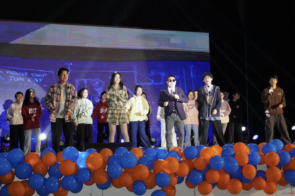颁奖环节,于文洁、徐保昌、任龙为“21天名词打卡”“学霸笔记评选”活动中的获奖同学颁奖,展现当代学子青春朝气的风貌。《歌唱祖国》将晚会推向高潮。