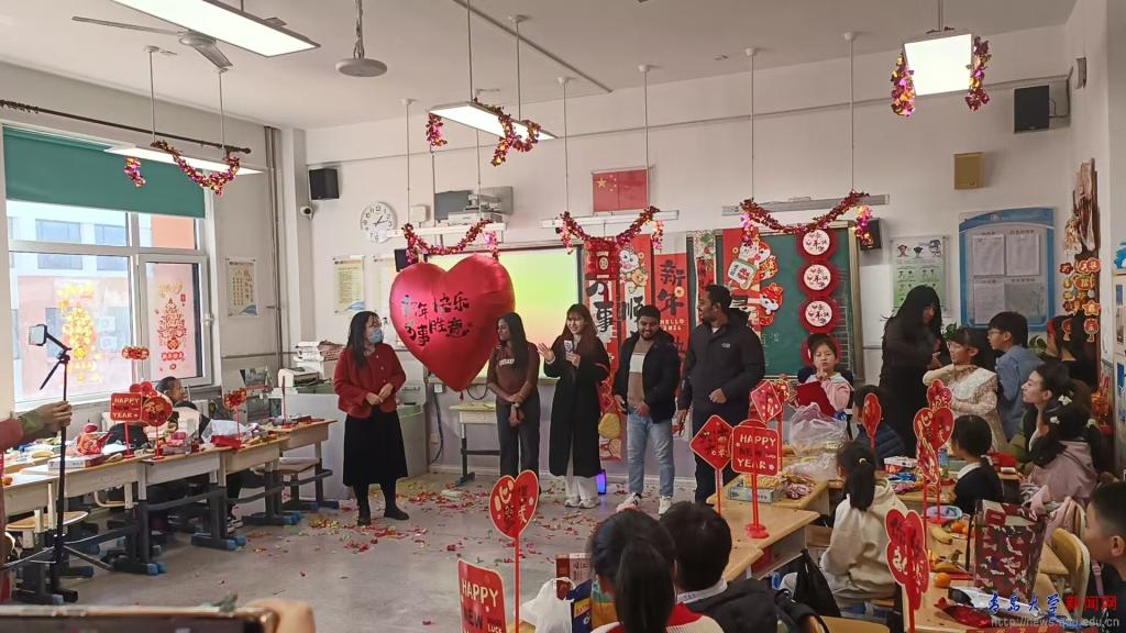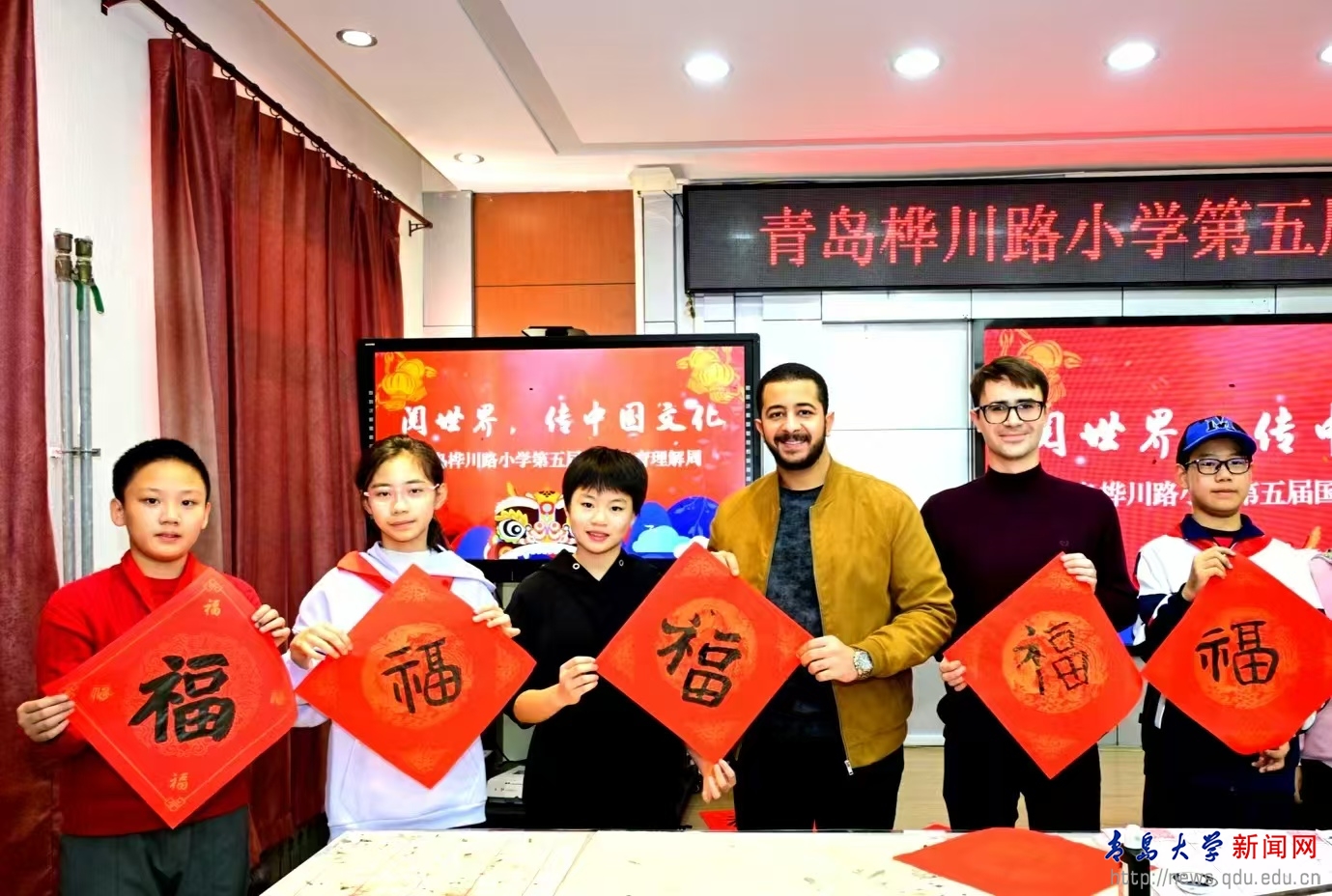 新闻网讯 近日,我校来自白俄罗斯和埃及的2名留学生参加了青岛市中外人文交流实验学校--市北区桦川路小学第五届“阅世界 传中国文化”国际理解教育周活动。活动中,小学生们进行了中国传统扇舞、书法、篆刻、泥塑等中国传统技艺的展示交流,表演了英文动画配音情景剧并演唱了贺新年英文歌曲。来自政管学院的白俄罗斯留学生李安迪则向参加活动的师生详细介绍了白俄罗斯的风土人情、特色食品和人文景观等,中外学生其乐融融,相互交流学习,架起了中外文化学习沟通的桥梁,在互动交流中,进一步了解对方国家文化和风土人情,充分感受了国际理解教育的魅力。