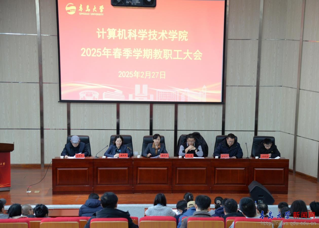 新闻网讯 2月27日下午,计算机科学技术学院在浮山校区会议中心305会议室召开2025年春季学期期初全体教职工工作部署会。学院领导班子成员及全体教职工参加会议,院党委副书记彭双凤主持会议。