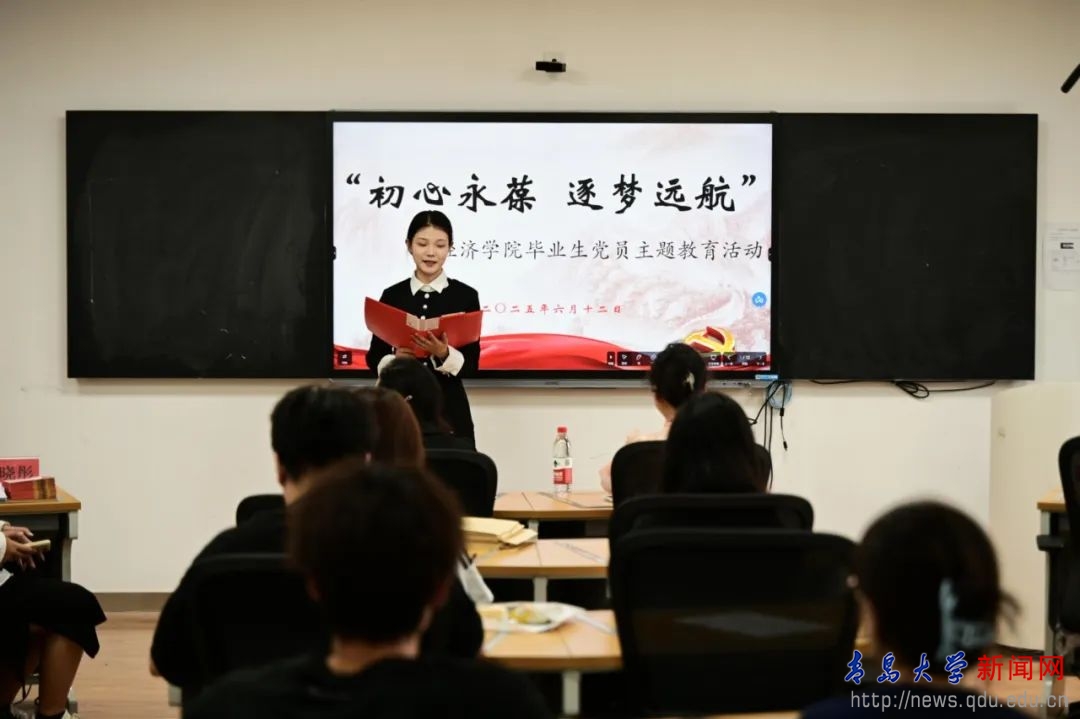 新闻网讯 为了增强毕业生党员的党性意识,激发毕业生爱校荣校之情、感恩奉献之心和报国成才之志,6月18日上午,经济学院举行“初心永葆,筑梦远航”毕业生党员主题教育活动。经济学院党委副书记于文洁、团委书记戴俊杰、辅导员周晓彤出席活动,全体本科毕业生党员参加活动。