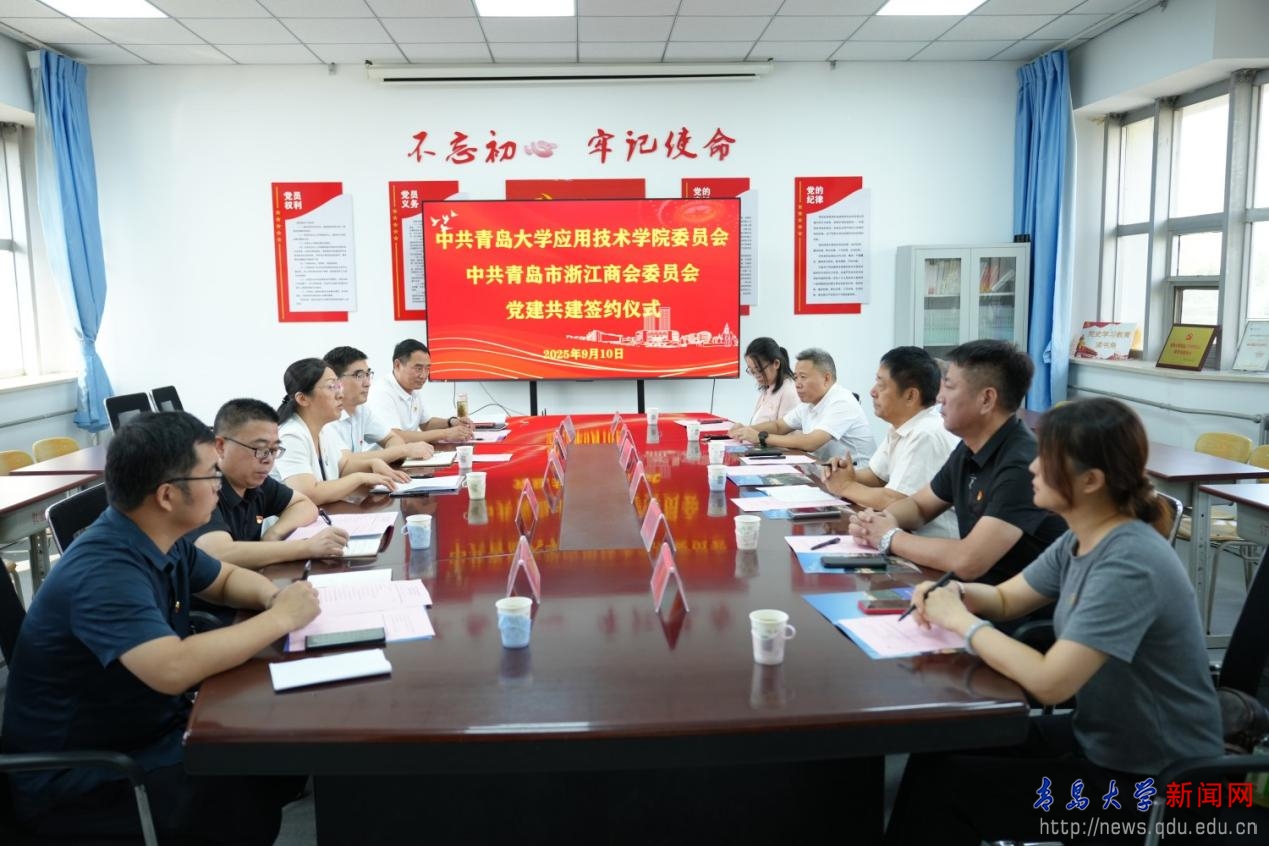 新闻网讯 近日,应用技术学院党委与青岛市浙江商会党委在金家岭校区东院行正楼310会议室举行党建共建协议签约仪式,双方将以党建为引领,推动校企深度融合,共同助力地方经济社会高质量发展。