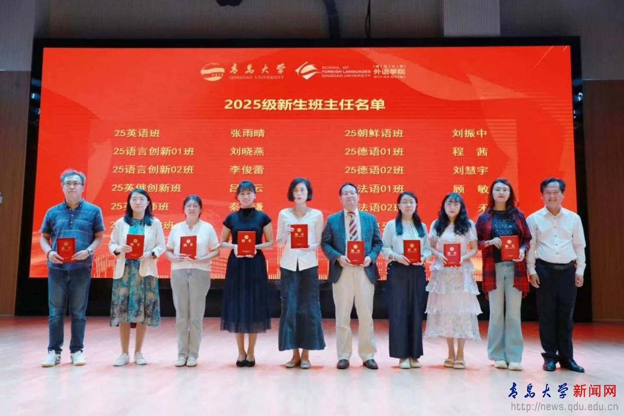 新闻网讯 9月27日上午,外语学院2025级本科新生开学典礼暨新生入学教育圆满举行,外语学院领导班子、各系主任、2025级新生班主任、全体辅导员、教学办老师、2025级全体本科新生参加大会。外语学院1998级朝鲜语系校友、高丽制钢(中国)总经理刘东受邀出席活动。开学典礼由外语学院党委副书记于苗主持。