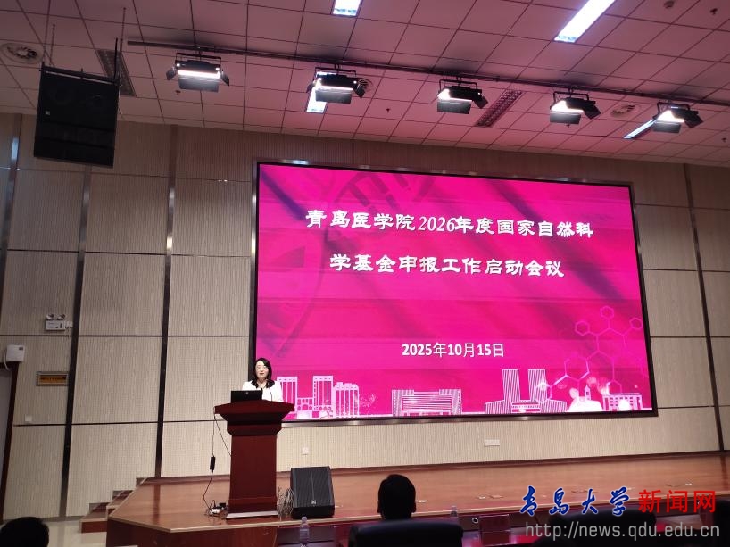 新闻网讯 10月15日上午,青岛医学院在浩园综合楼学术报告厅召开2026年度国家自然科学基金申报工作启动会。青岛医学院常务副院长李冰、副院长张蓓出席,各学院、研究院及附属医院科研负责人与教师代表现场参会。会议由副院长王建勋主持。
