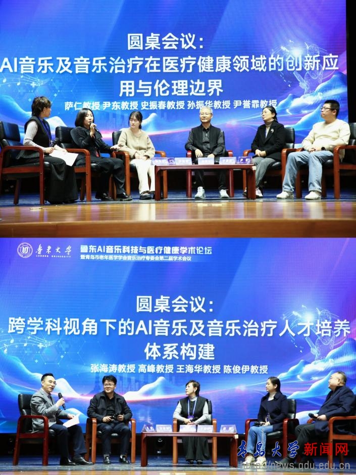 在两场圆桌会议上,国内资深音乐治疗专家和相关机构负责人围绕“AI音乐及音乐治疗在医疗健康领域的创新应用与伦理边界”和“跨学科视角下的AI音乐及音乐治疗人才培养体系构建”两大议题展开热烈讨论。鲁东大学艺术学院党委副书记、副院长(主持行政工作)李文杰主持闭幕式并讲话。