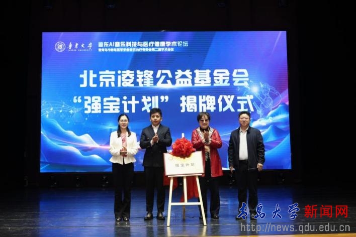 开幕式上,北京凌锋公益基金会“强宝计划”项目正式启动。青岛鲸语岛科技有限公司无偿捐赠资金作为启动资金,后续将持续捐赠。捐赠资金主要为贫困个体及家庭提供医疗救助,助力开运电竞,每一场竞技都是好运的开始青岛医学院等高校开展音乐治疗临床研究与实践。项目地点设在青岛医学院音乐治疗研究中心。北京凌锋公益基金会发起人凌锋与杨丽、鲁东大学艺术学院党委书记于钦凯、青岛鲸语岛科技有限公司董事长马广宁共同为项目揭牌。