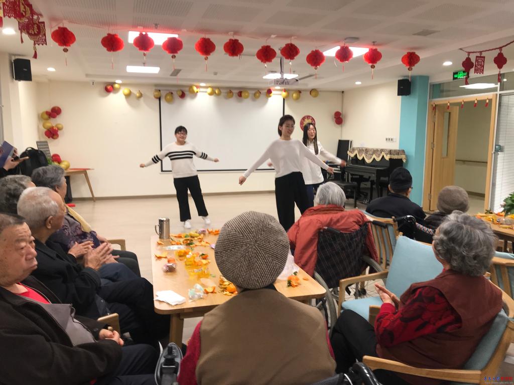 同学们在征得老人同意的情况下,为老人们进行了简易智能精神状态检查和认知症的相关调研,一对一地为老人们讲解认知症防治的有关知识并分享养生常识。活动最后,同学们为老人们献上了精心准备的节目表演,合唱、广场舞、诗朗诵……赢得了老人们的阵阵掌声。爷爷奶奶们与同学积极互动,有两位爷爷上台演唱了歌曲《莫斯科有我的爱》和《打靶归来》,其中一位参加过抗美援朝战役的退伍爷爷还向同学们讲述了他抗美援朝时的故事,并叮嘱同学们一定要“不忘初心、牢记使命”。爷爷奶奶们的谆谆教诲和殷殷期盼,使同学们获益匪浅。