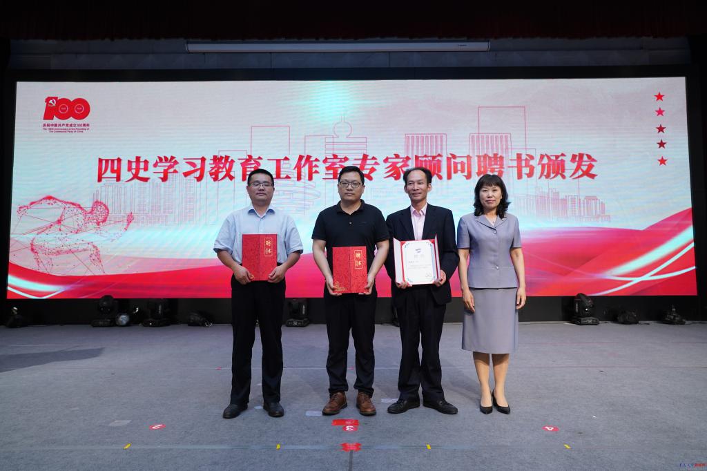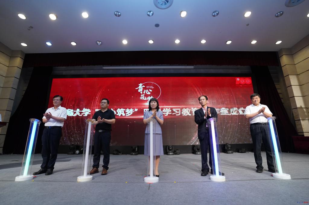 刘彩云,谢瑞华,李光全,吴世珍、徐龙飞为“青心筑梦”四史学习教育工作室揭牌。
