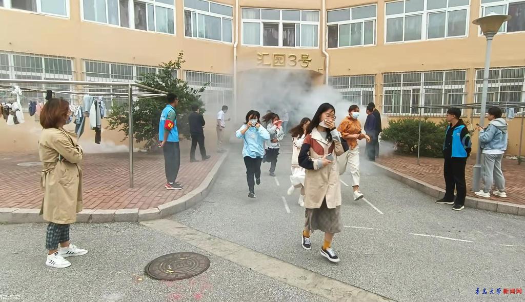 新闻网讯 为提高学生的消防安全意识,增强火灾突发事件应急疏散处置能力,让学生掌握消防常识和火场逃生、自救的方法。10月15日中午,安全管理处和学生工作处在浮山校区汇园3号楼组织举行消防知识培训及消防疏散演练活动。活动由学生工作处、安全管理处以及相关学院组织实施,同时成立了指挥组、现场警戒组、救护组、疏散引导组、烟火组、保障组、联络组、宣传组保证活动顺利进行。