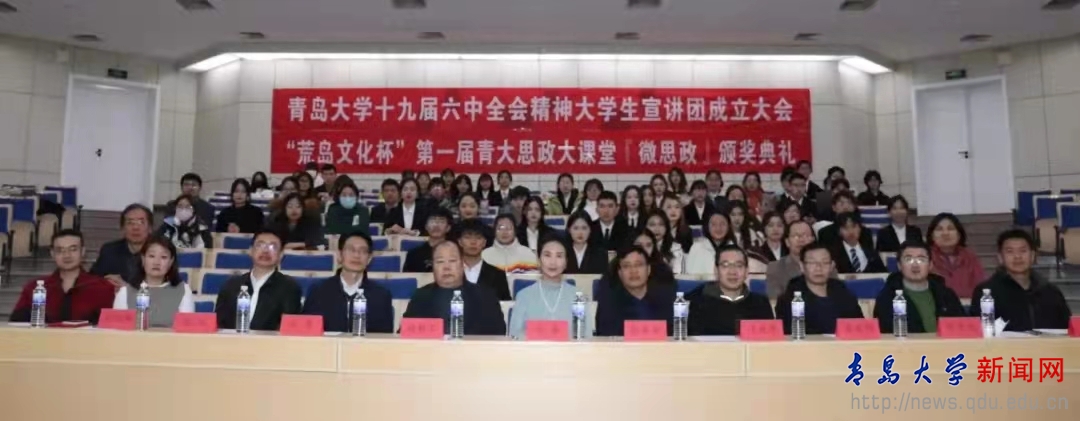 新闻网讯 12月16日,我校党的十九届六中全会大学生宣讲团成立大会暨第一届思政大课堂“微思政”颁奖典礼在图书馆报告厅举行。