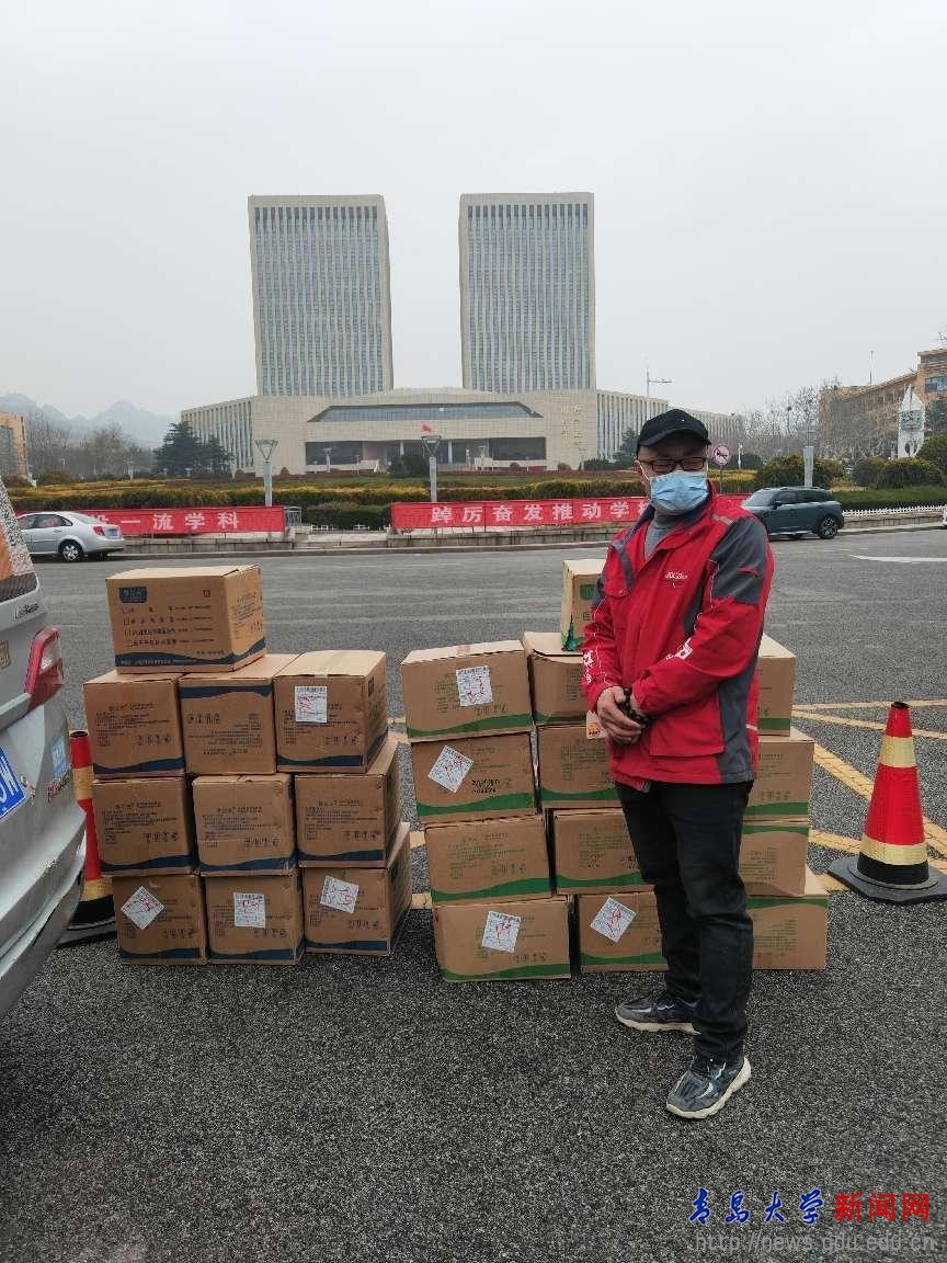 山东愉悦集团董事长刘曰兴先生向学校捐赠远红外光疗马甲100件、纳纤膜口罩5000只。为一线医务人员、学生志愿者和防疫工作人员送温暖。 经马克思主义学院积极联系,山东立菲生物产业有限公司总经理黄宁先生(山大EMBA)向学校爱心捐赠医用外科口罩15万只。青岛联合创达网络科技公司总经理蔡世禄先生向学校捐赠方便面50箱,矿泉水30箱,火腿肠10箱,对奋战在防抗一线的校园安保人员表示慰问。