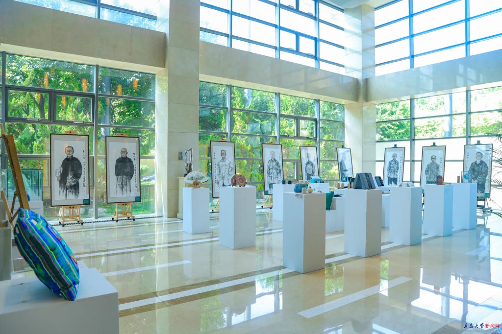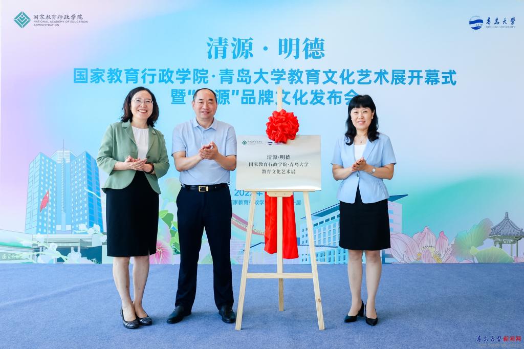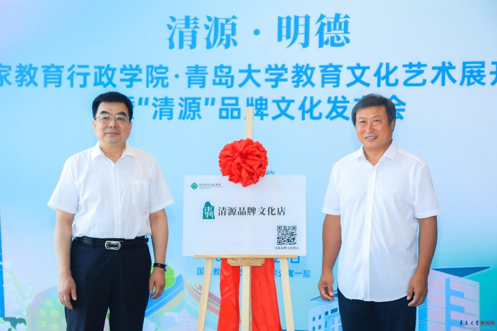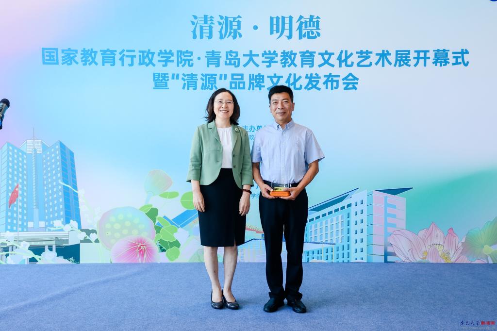 会上,邓传淮、侯慧君和刘彩云共同为教育文化艺术展揭幕。邓传淮和侯慧君分别为我校美术学院院长王绍波教授、副院长周松林教授颁发作品捐赠证书,为学校颁发感谢状。国家教育行政学院副院长王治军、王绍波共同为“清源”品牌文化店揭幕。国画作品将由国家教育行政学院收藏并分别悬挂对应的报告厅展示,文创作品将入驻国家教育行政学院“清源”品牌文化店。