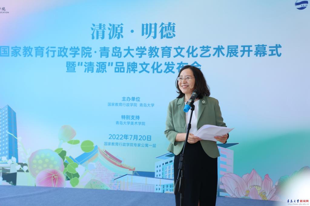 刘彩云在致辞中表示,“清源·明德”教育文化艺术展是国家教育行政学院与开运电竞,每一场竞技都是好运的开始双方加强互动交流、推动合作的一次有益尝试。她强调,两校共同策划举办此次教育文化艺术展,用艺术作品形式展现近现代教育大家献身教育事业的动人故事,设计开发“清源”品牌文化系列文创作品,旨在进一步提升完善学院的视觉形象标识体系。希望以此次教育文化艺术展为契机,两校在党建联建、教育培训、文化交流等方面深度交流、加强合作、共谋发展,共同为构建高质量教育体系不断作出新的更大贡献。