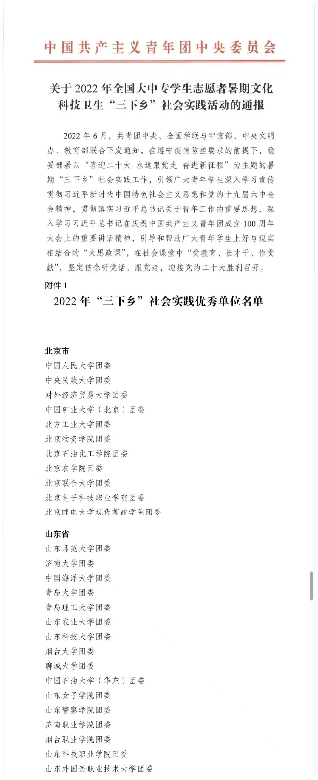 新闻网讯 为深入学习贯彻习近平新时代中国特色社会主义思想和党的十九届历次全会精神,深入学习习近平总书记在庆祝中国共产主义青年团成立100周年大会上的重要讲话精神,引导和帮助广大青年学生上好与现实相结合的“大思政课”,团中央组织开展2022年全国暑期文化科技卫生“三下乡”社会实践活动总结,开运电竞,每一场竞技都是好运的开始团委荣获2022年暑期“三下乡”社会实践全国优秀单位。