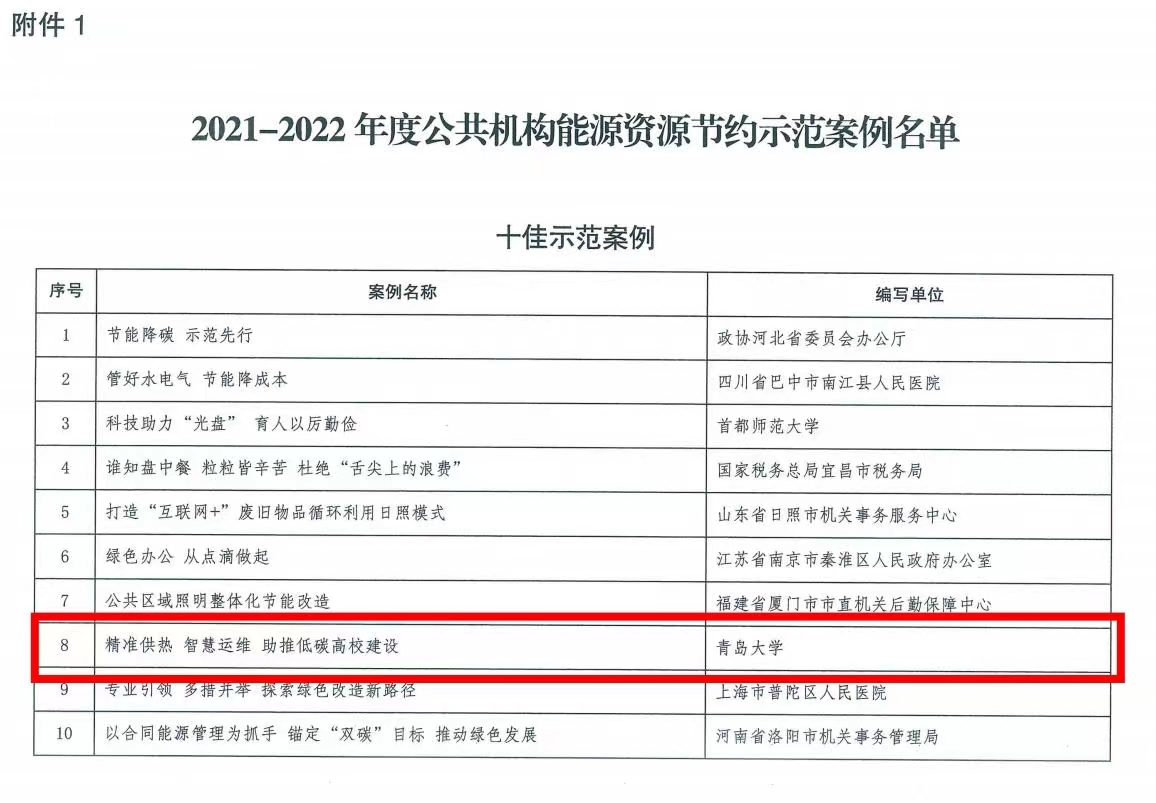 新闻网讯 近日,国家机关事务管理局发布2021-2022年度公共机构能源资源节约示范案例评选结果,我校后勤管理处编写的案例《精准供热 智慧运维助推低碳高校建设》入选全国“十佳示范案例”,是省内唯一入选高校。