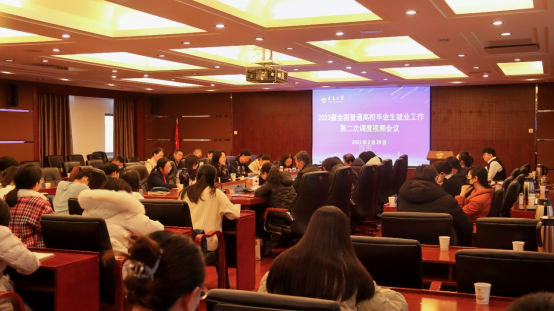 新闻网讯 2月28日下午,教育部高校学生司会同学生服务与素质发展中心召开2023届全国普通高校毕业生就业工作第二次调度视频会议。我校各学院党委副书记和全体毕业生辅导员在办公楼407会议室收听收看会议,学生工作处处长王春出席并在视频会后讲话。