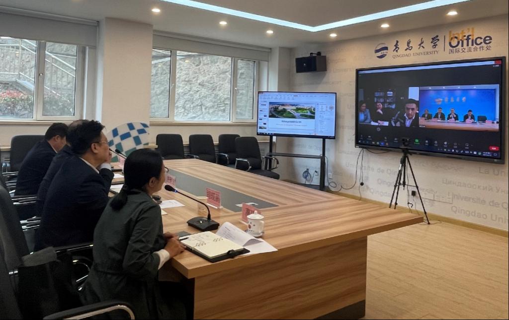 新闻网讯 4月18日下午,我校与塔吉克斯坦胡占德国立大学举行视频工作会议,胡占德国立大学国际处处长达夫拉特佐达,我校国际合作交流处处长汪运波,上合经贸学院办公室(胶州校区建设办公室)主任马林刚以及双方相关工作人员参加会议。