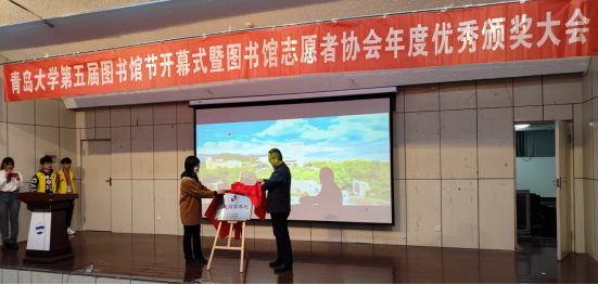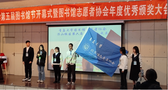 开幕式上,还进行了新一届图书馆志愿者协会会旗交接仪式、志愿者集体宣誓、图书馆“三下乡”队旗传递仪式和现场抽奖等活动。