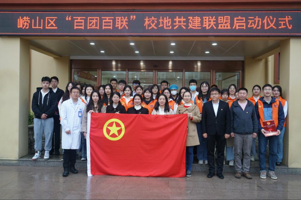 我校团委副书记赵斐斐与崂山团区委签订共建协议,环境科学与工程学院团委副书记尹昊与街道签订结对共建协议,商学院宋文硕、环境科学与工程学院付钰琨、李淑芳三名学生被聘为崂山区“青政见习”社区兼职团干部,开启校地共建一院一街道、一支部一社区、百团百联的服务对接格局。崂山区委、崂山团区委与三所驻区高校团委领导共同为“百团百联”校地联盟揭牌,并为我校社区实践团队代表授出征旗。