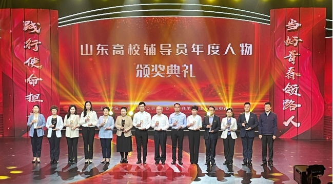 新闻网讯 近日,2022 年“山东高校辅导员年度人物”颁奖典礼在山东教育电视台举办,山东省委教育工委常务副书记,省教育厅党组书记、厅长李明出席活动并为获奖辅导员颁奖,我校商学院辅导员陈鑫获得此项荣誉并上台领奖。
