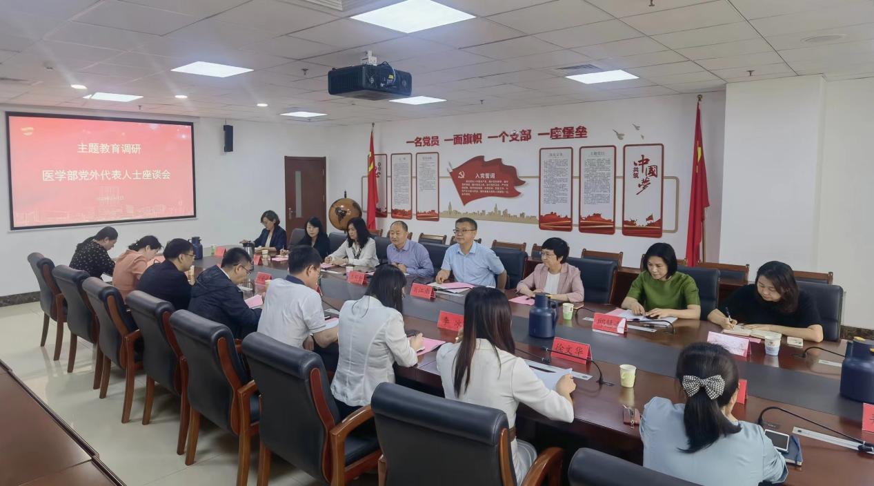 新闻网讯 6月1日上午,校党委副书记肖江南赴医学部与党外代表人士座谈,开展主题教育专题调研。校党委统战部常务副部长王春光陪同调研。归侨代表、药学院院长张汉霆,九三学社青大副主委、公共卫生学院常务副院长于典科,民进青大副主委、医学部副部长李冰等9位党外代表人士,医学部党委常务副书记王有全,统战部、医学部及各学院分管统战工作领导参加座谈。