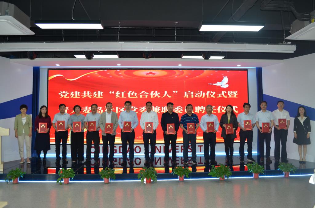 活动仪式上,金家岭街道党工委负责人为离退休党委、校团委、文学与新闻传播学院党委、数学与统计学院党委、物理科学学院党委、化学化工学院党委、纺织服装学院党委、医学部党委、旅游与地理科学学院党委、音乐学院党委颁发“红色合伙人”证书,为各单位党组织负责人颁发社区党委兼职委员聘书。校党委组织部副部长吴鹏为青大麦岛社区党委书记董媛媛颁发“大学生党员志愿服务社区导师”聘书。“红色合伙人”党建共建单位围绕党建联建、理论宣讲、党员培训、社区治理、家校社家庭教育实践、志愿服务等工作开展了座谈交流。