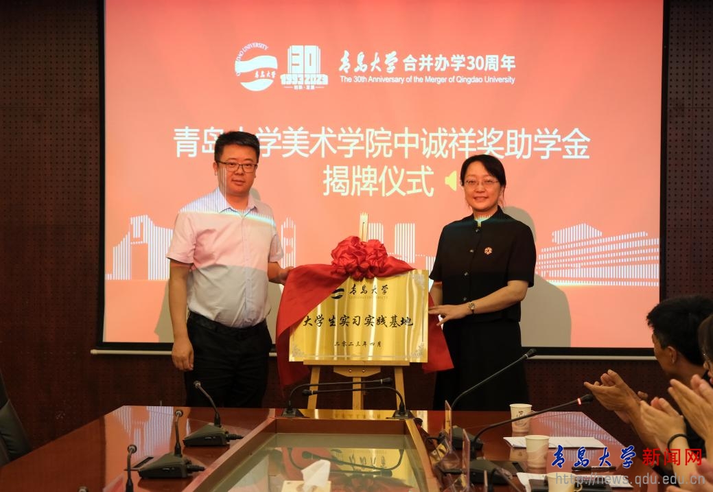 仪式上,刘彦辰、王春共同为“实习实践基地”揭牌。获奖学生代表徐宣表达了对中诚祥建设集团的感谢和对学校学院栽培的感激之情,她必将坚守初心,怀着感激之情,将这份光荣和责任传承下去。