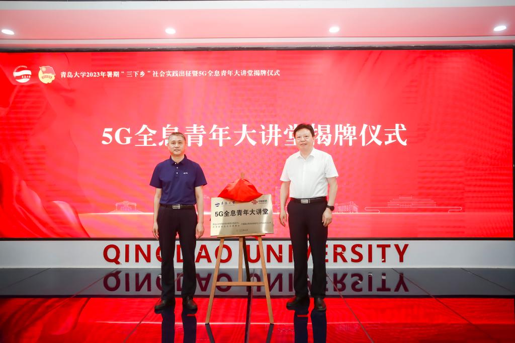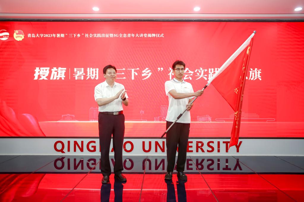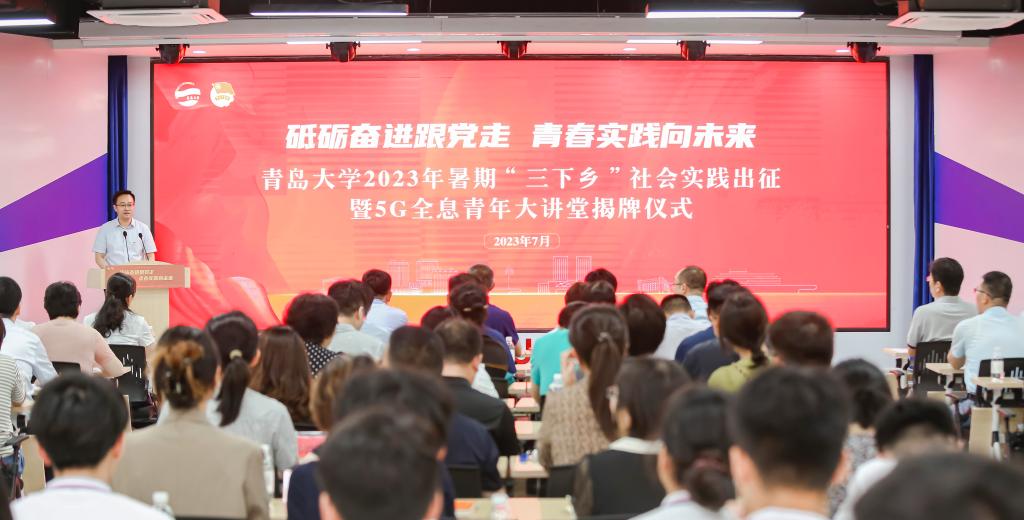 新闻网讯 为深入学习贯彻习近平新时代中国特色社会主义思想和党的二十大精神,学习习近平总书记在同团中央新一届领导班子成员集体谈话时的重要讲话精神,牢牢把握‘学思想、强党性、重实践、建新功’的总要求,7月4日下午,我校2023年暑期“三下乡”社会实践出征暨5G全息青年大讲堂揭牌仪式在大学生科创文化中心5G全息青年大讲堂举行。校党委常委、副校长陈涛,中国联通山东分公司政企BG副总裁宋元庆出席仪式并讲话。中国联通青岛分公司、崂山分公司领导,学校各相关部门负责同志,各学院(部)分管书记、分管院长和团委全体工作人员,暑期实践团队的指导教师和学生代表参加了仪式。仪式由校团委书记解文斌主持。