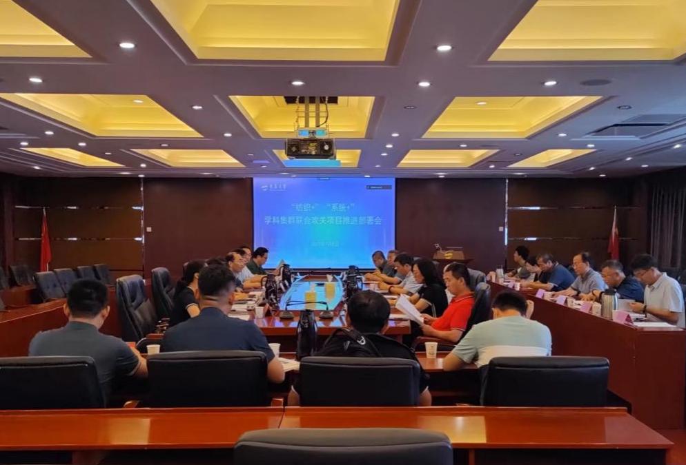 新闻网讯 7月8日下午,学校在办公楼407会议室召开“纺织+”“系统+”学科集群联合攻关项目推进部署会。校党委常委、副校长孔伟金,副校长李荣贵出席会议。