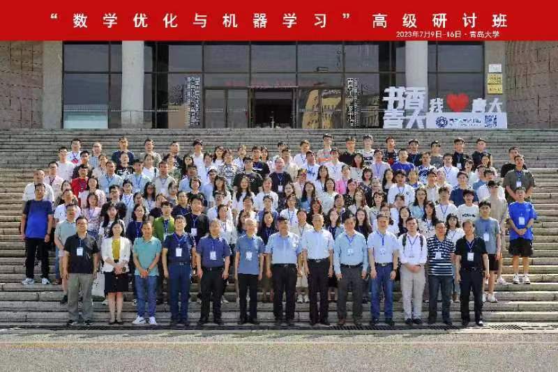 新闻网讯 7月10日上午,2023年国家自然科学基金委数学天元基金“数学优化与机器学习”高级研讨班及研究前沿讲座在我校会议中心学术报告厅举行。副校长李荣贵,青岛市科协党组成员、副主席刘红英,中国运筹学会副理事长、国家基金委数学天元基金学术领导小组成员郭田德出席研讨班开幕式。来自北京大学、中国科学院大学、山东大学、南开大学、南京大学、东南大学等60余所高校、科研院所的150余名学员参加。