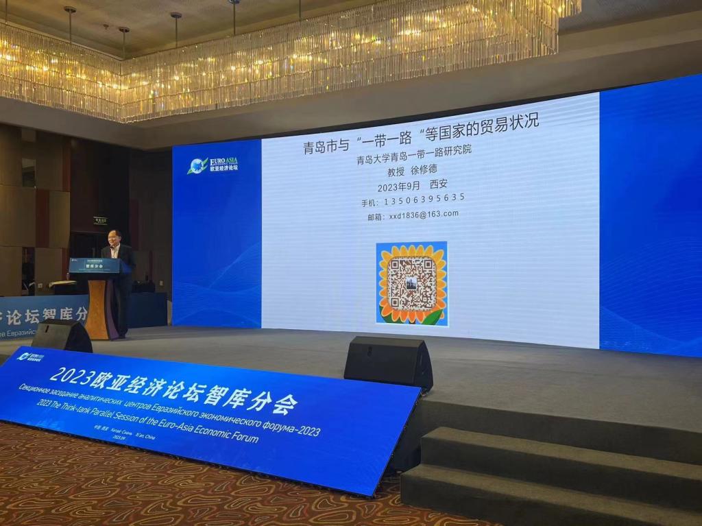 在以“新时代的欧亚经济合作:动力、机遇与未来”为主题的欧亚经济论坛智库分会上,我校“一带一路”研究院院长徐修德受邀作了“青岛市与‘一带一路’等国家的贸易状况”的报告,并接受财经通讯社的专访。