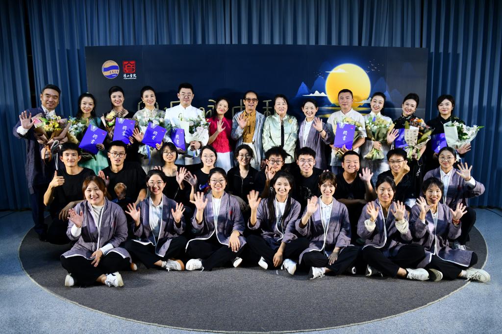 浮山书院指导教师卢文丽带领十六位浮山书院学子代表,手持大家亲手制作的花草宣纸月兔灯,以一首《水调歌头·明月几时有》的深情朗诵,拉开了音乐会的序幕。