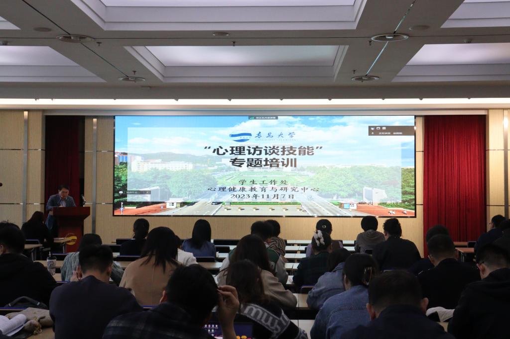新闻网讯 为进一步提升我校学工人员心理访谈的专业胜任力,做到危机学生早识别、早干预,11月7日下午,学生工作处心理健康教育与研究中心邀请中国矿业大学学生工作处副处长、大学生健康教育中心副主任范韶维做了“心理访谈技能”专题培训。全体学工人员和专兼职心理咨询师近300人参加了培训。