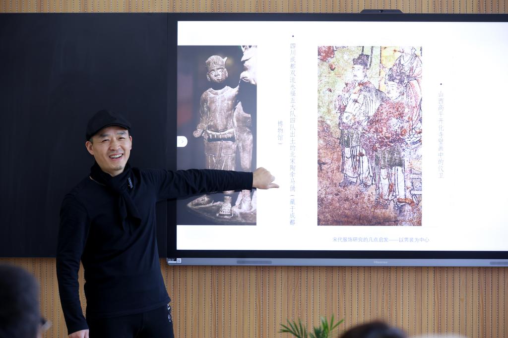 新闻网讯 11月18日上午,河南纺织服装博物馆馆长黄智高受邀做客我校浮山讲堂第93期,在浮山书院做题为《宋代服饰研究的几点思考——缘起于创意之困》的学术讲座。讲座由浮山书院负责人卢文丽主持,纺织服装学院设计学负责人初晓玲及服饰学与时尚传播研究中心团队参加讲座。
