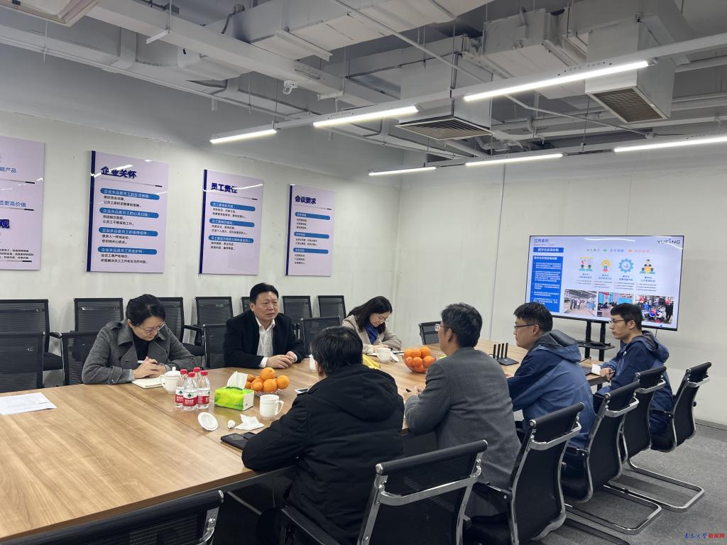 陈涛一行首先来到歌尔微电子股份有限公司展厅,深入了解了歌尔微电子的公司发展历程和产品研发、业务范围和技术服务情况,并公司相关负责人就校企合作、用人需求等方面进行深入交流。