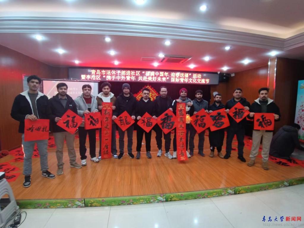 新闻网讯 1月25日上午,我校40多名留学生来到九水东路社区党群服务中心参加了李沧区“福满中国年 迎春送福”活动暨“携手中外青年 共赴美好未来”国际青年文化交流节,外国留学生们与青岛市老干部、青年志愿者、社区居民共同体验中国春节文化,感受中国传统文化魅力,共同迎接甲辰龙年的到来。活动由青岛市委老干部局、李沧区委老干部局、李沧团区委、李沧区九水街道办事处共同承办,分为“瑞狮呈祥”“书法送福”“剪纸迎春”“民乐炫彩”“民俗展演”等环节。