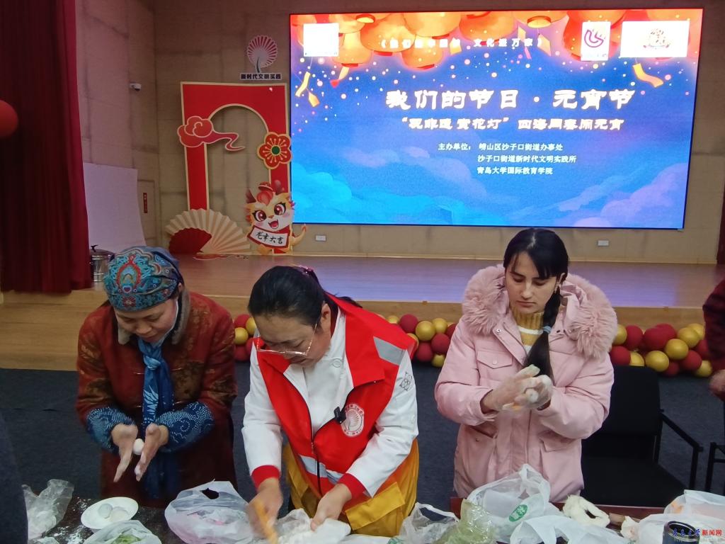在崂山区沙子口街道新时代文明实践所,活动现场热闹非凡,留学生们聆听工作人员讲述了元宵节的由来以及传统习俗,并在中国工艺美术学会会员段启英的指导下,揉捏造型、镶嵌红豆,制作了形态各异的面灯。正月十五捏面灯是胶东地区的传统民俗,人们祈愿在新的一年里生活如意,五谷丰登。在国家中式面点高级技师刘海霞的指导下制作了四色汤圆,在青岛花灯非遗传承人孙志芳的讲解下欣赏了青岛花灯。留学生们一起捏汤圆、猜灯谜、观非遗、赏民俗,体验中国元宵节民俗,感受中国传统节日文化魅力。