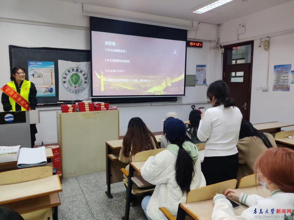 新闻网讯 在第九个全民国家安全教育日来临之际,为把贯彻总体国家安全观、增强全民国家安全意识和素养根植于学生心中,引导师生挺膺担当时代新人,共筑国家安全防线,自3月初开始,根据学校统一部署安排,安全管理处、党委宣传部、学生工作处、校团委等相关部门在全校范围组织开展了学生国家安全知识线上竞答活动、校园反邪教宣讲、国家安全教育宣讲会、国家安全主题教育进学院等内容丰富、形式新颖的主题教育活动近16场,数万名学生参与活动。