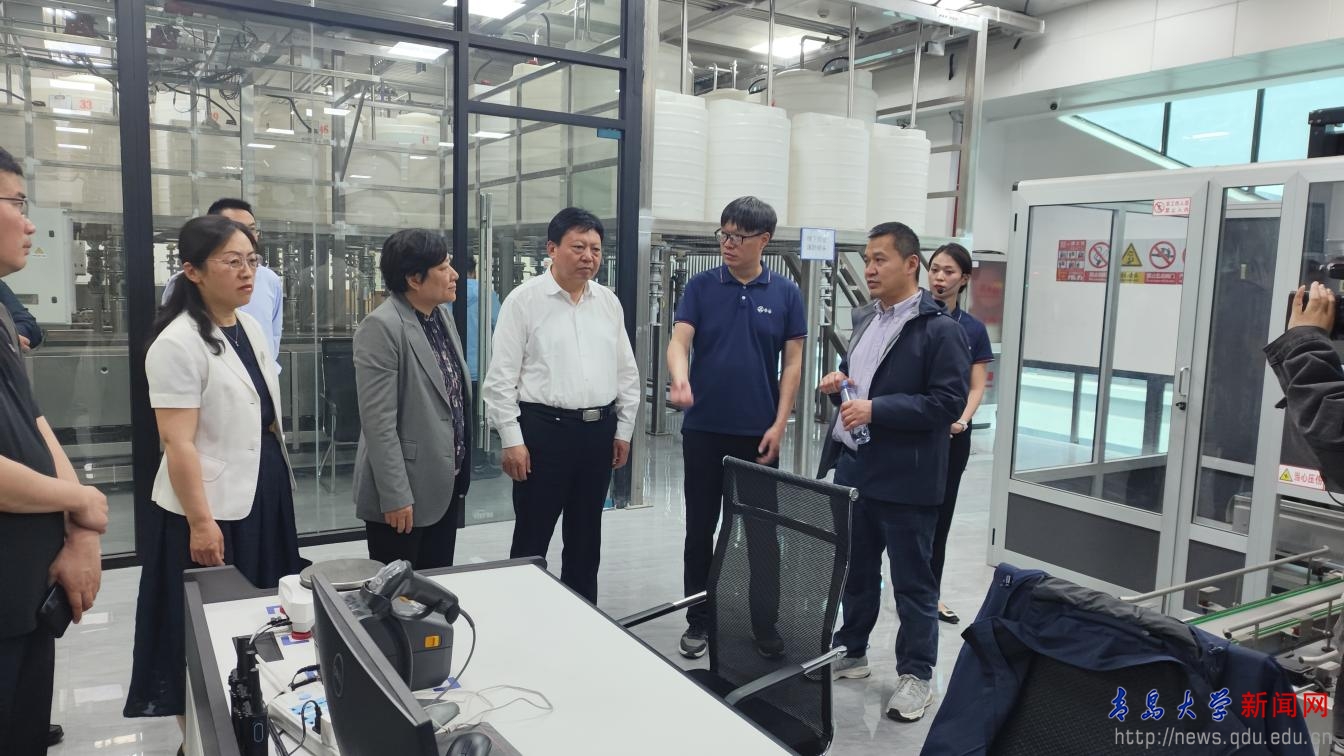 菏泽市教体局副局长邓文举,菏泽市社科联党组成员、社科院院长、菏泽校友会秘书长、86级管理专业校友荣海生,定陶区人大常委会主任、86级管理专业校友孔素珍,定陶区区委政法委书记、98级纺织专业校友陈刚陪同调研。