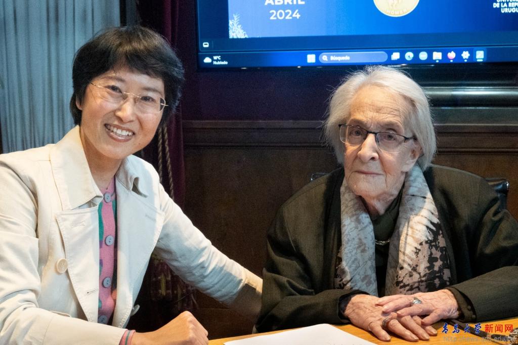 新闻网讯 乌拉圭当地时间4月25日,乌拉圭共和国大学孔子学院,为乌拉圭著名诗人伊达·维塔莱举办了其荣获“欧洲诗歌暨文艺荷马奖章”的颁奖典礼。