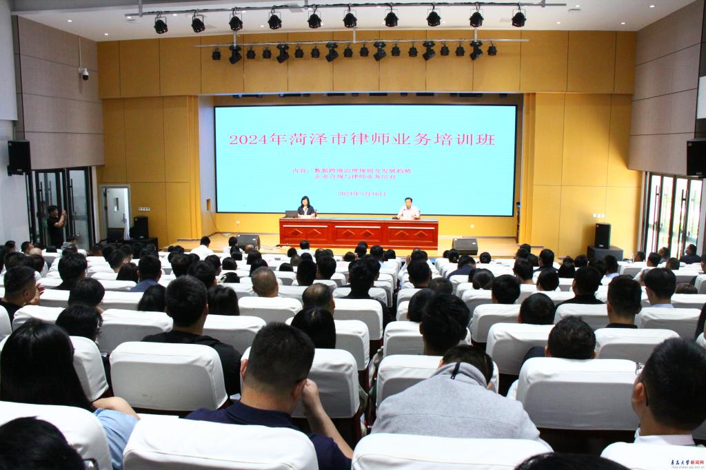 签约揭牌仪式后,举办了2024年菏泽市律师业务培训班,菏泽市专兼职律师、公职律师共300余人参加培训。蔡颖雯围绕“数据跨境治理规则及发展趋势”、法学院副教授牛传勇围绕“企业合规与律师业务应对”进行了授课。