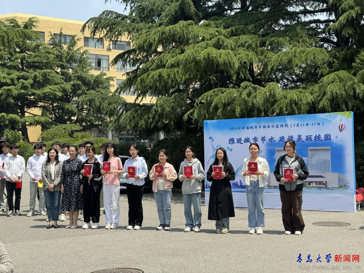 学校始终坚持“节水优先”理念,运用智能方式做好水资源的节约管理,搭建节能实践育人平台,在全校师生中形成了“节水我们一起做”的共识,节水意识深入人心,获得“青岛市节水先锋学校志愿队”称号。王静为环境科学与工程学院学生党支部授志愿队队旗,学生代表宣读《节水倡议书》,卢正波等为积极参与山东省水利厅、教育厅举办的节水主题PPT课件征集活动的学生颁奖,音乐学院学生齐声演唱歌曲《节水中国》,将活动现场氛围推向高潮。