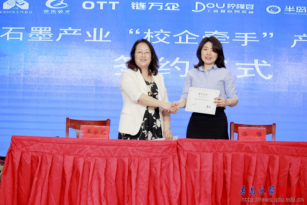 活动现场,青岛洛唯新材料有限公司与王宗花教授进行校企现场“牵手”,通过平台“结对子”,建立“朋友式”紧密合作关系。
